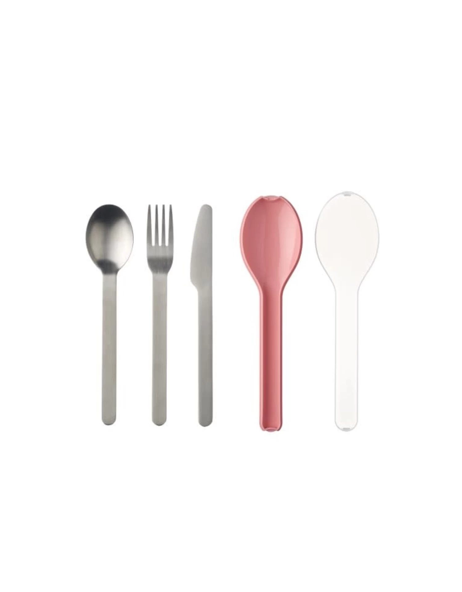 3-delige bestekset in de kleur nordic pink. De stijlvolle en praktische Ellipse bestekset van Mepal bestaat uit een mes, vork en lepel en wordt bewaard in een compacte nordic pink (roze) kunststof houder. Ideaal voor onderweg! Het bestek is gemaakt van roestvrijstaal (RVS) en mag na gebruik gewoon in de vaatwasser.